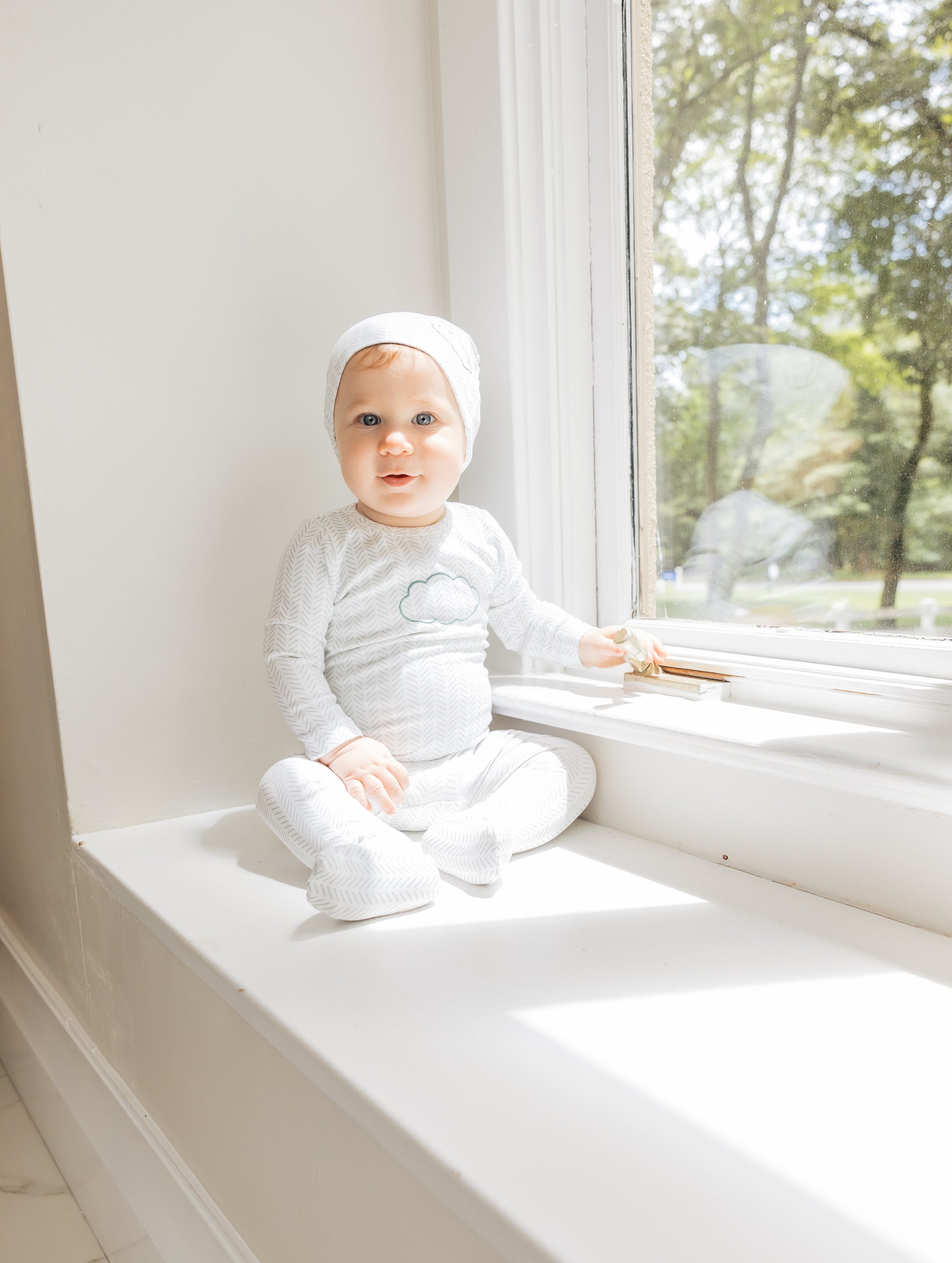Cloud Herringbone Baby Footie & Hat Set